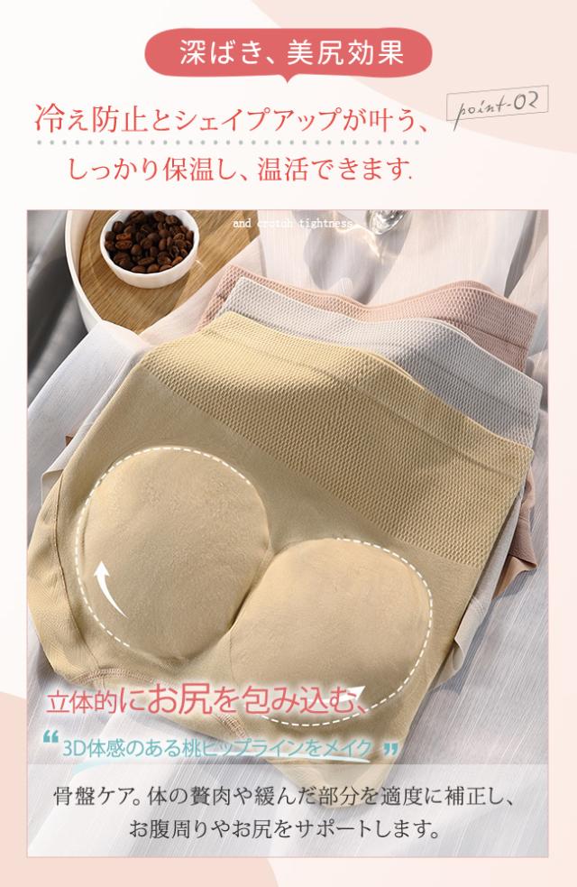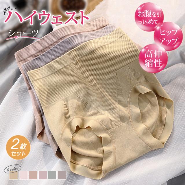 【2枚セット】ハイウェストショーツ レディース 下着 無縫製 深ばき 美尻ショーツ 温活ショーツ 妊活 お腹まで包む ヒップ立体縫製 冷え対策 産後 補正下着 伸縮性