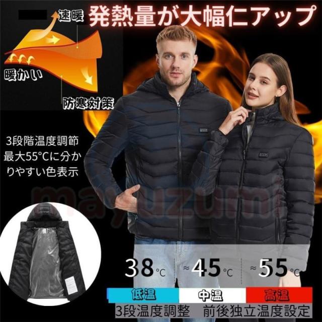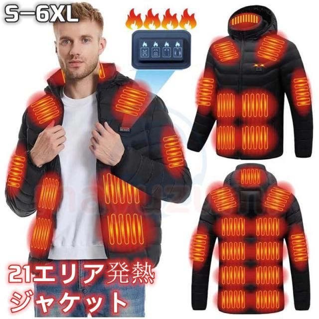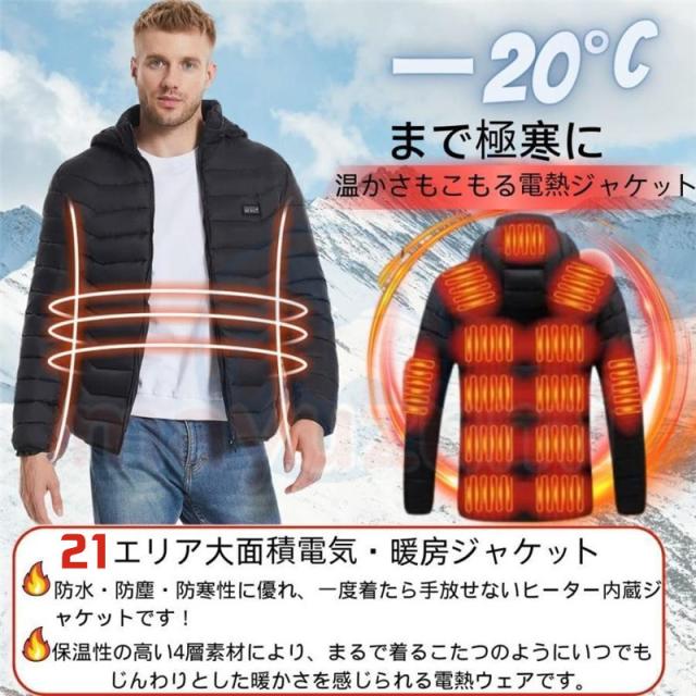 電熱ジャケット 21エリア発熱 発熱ジャケット ワークマン 電熱ウェア バイク ダウンジャケット ヒーター内蔵 防寒着 3段温度調整 USB給電 アウトドア 洗える