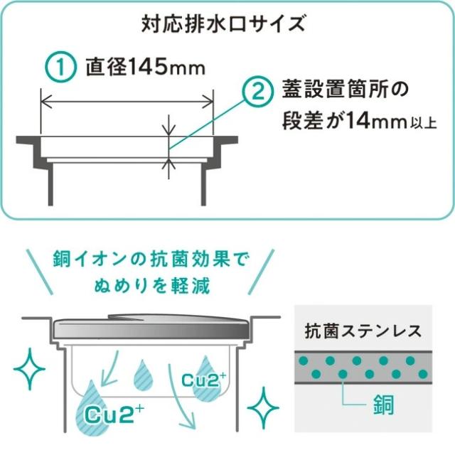 排水口カバー leye 抗菌ステンレス排水口カバー 日本製 ステンレス 銅 ぬめりにくい シンク 流し キッチン 台所 銅イオン レイエ レイェ 排水溝 シンプル おしゃれ LES3213 ゆうパケット送料無料
