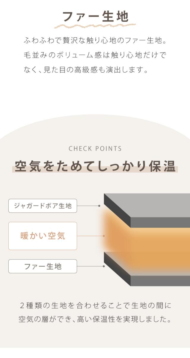 ■表面はニット風ジャガード素材、裏面はファー素材を使用。