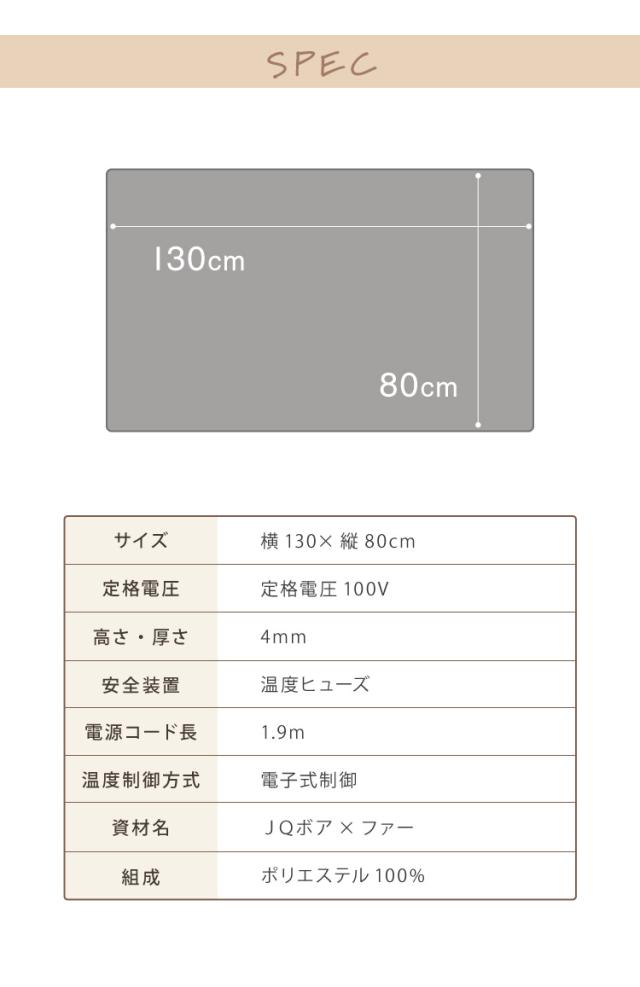電気敷毛布 130×80cm JQボア ファー 電気ブランケット ふわふわ 速暖 温度調節 ひざ掛け 丸洗いOK 冬用 寝具 在宅ワーク CWA401G-HP 家電 あったか 冬 防寒 防寒対策 リビング【送料無料】