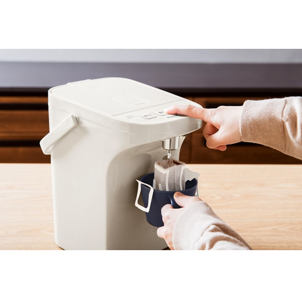 ●操作パネルに中央にある「給湯ボタン」を軽くワンタッチすればお湯が注げます。