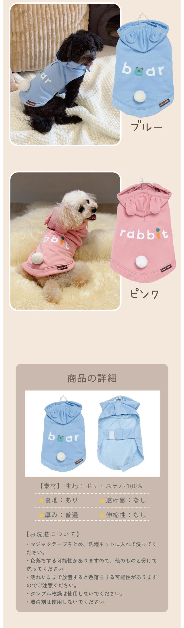 犬服 ペット服 ドッグウェア パーカー ポンチョ おしゃれ かわいい 可愛い 着せやすい くま 耳 うさぎ 耳 お散歩ウェア アニマルパーカー