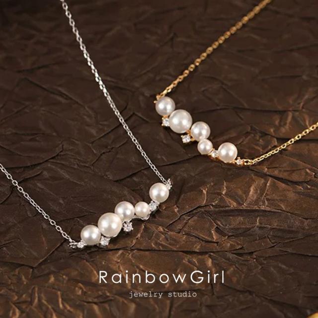 ネックレス レディース パール バー 5粒 ジルコニア SV925 プラチナ仕上げ ゴールド 女性 20代30代40代50代誕生日プレゼント 人気 クリスマス