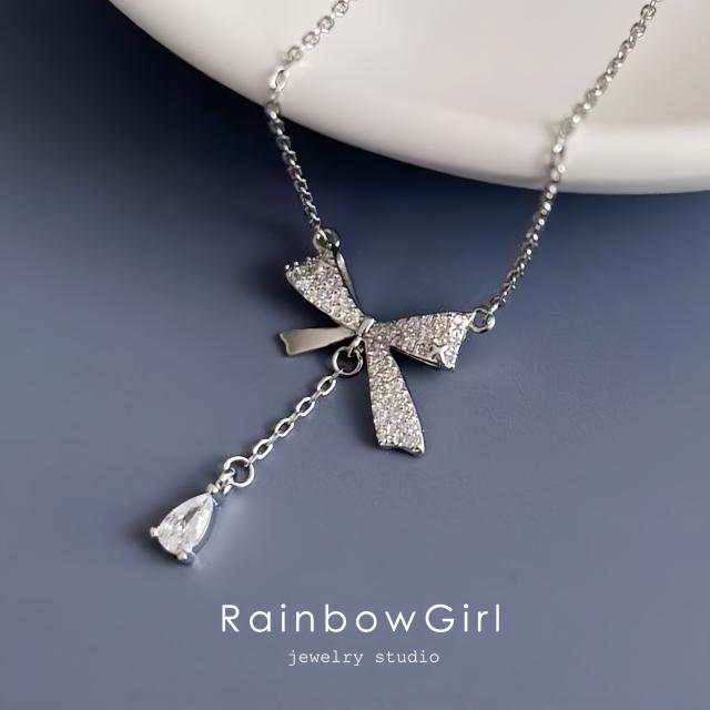 ネックレス レディース リボン ジルコニア 大人可愛い シルバー925 プラチナ仕上げ 人気 女性 ギフト 記念日 誕生日プレゼント クリスマス