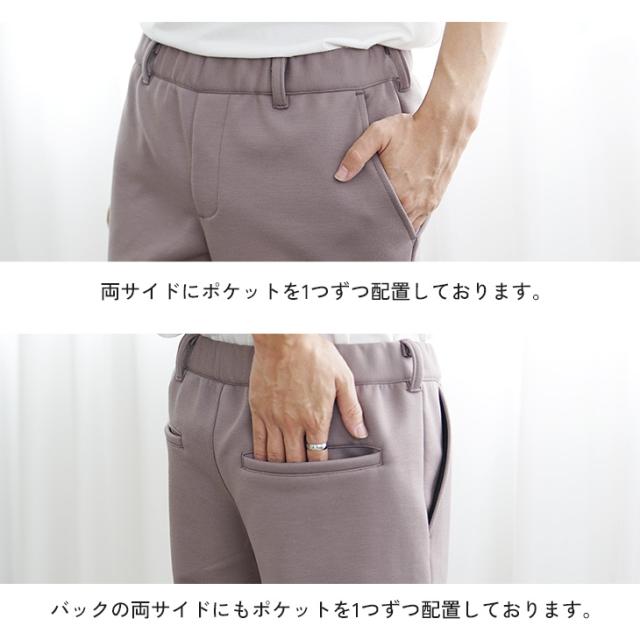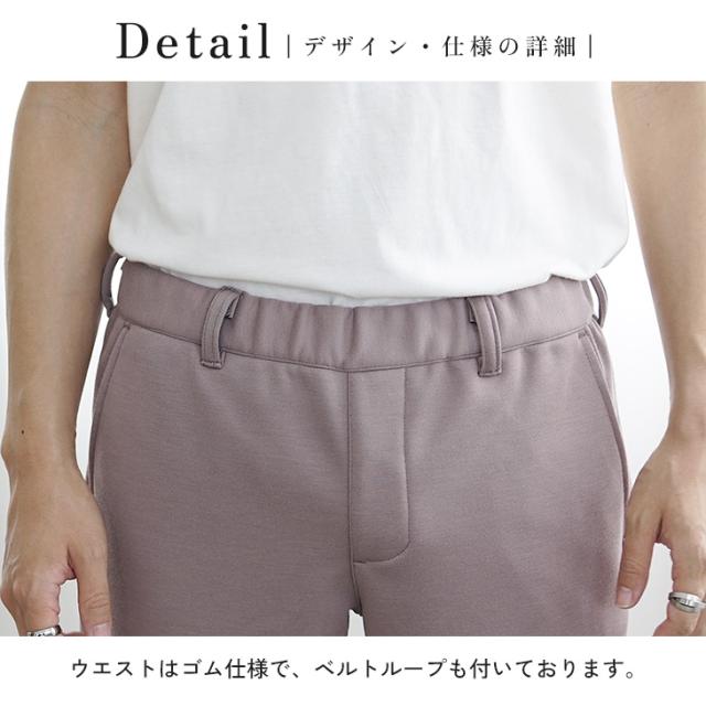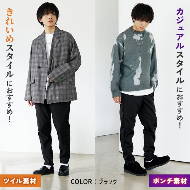 程よくツヤ感のあるツイル生地とスウェットのようなラクな穿き心地のポンチ素材の選べる2種類。