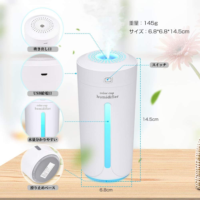 | キーワード | 加湿器 超音波式 卓上加湿器 2段階噴霧モード ミニアロマディフューザー 空気清浄機 LED ライト 長時間連続稼働 省エネ 乾燥対策 ミニアロマディフューザー 空気清浄機 LED ライト オフィス 部屋 車用空気清浄機 空焚き防止機能付き 水漏れ防止 静音 7色照明ランプ |