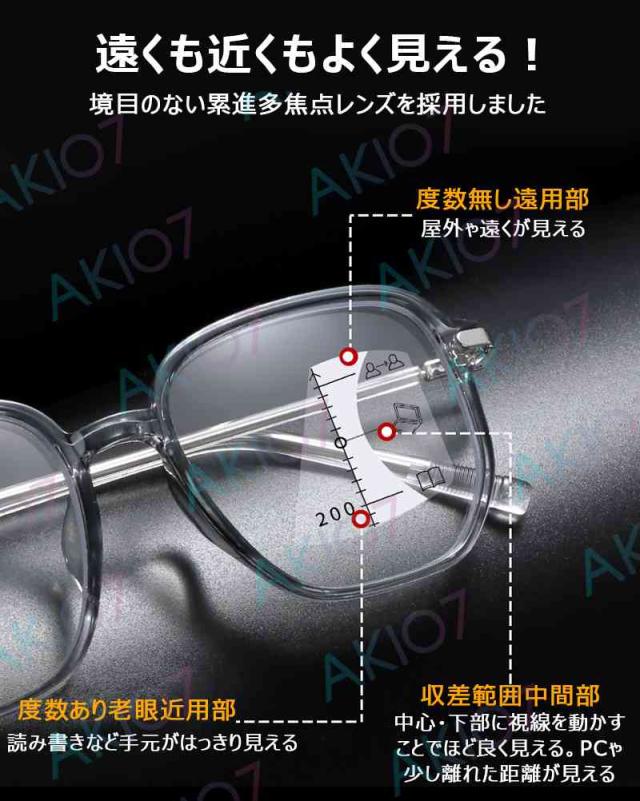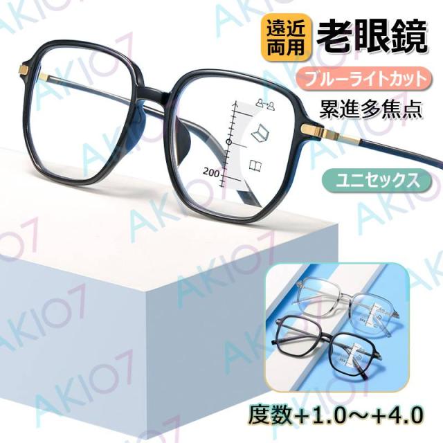 【度数+1.0〜+4.0選択可・ケース付き】老眼鏡 ブルーライトカット 老眼用メガネ 遠近両用 累進多焦点 おしゃれ 紫外線カット 眼鏡 メンズ レディース かっこいい 男女兼用 軽量 父の日 母の日 プレゼント お祝い 誕生日