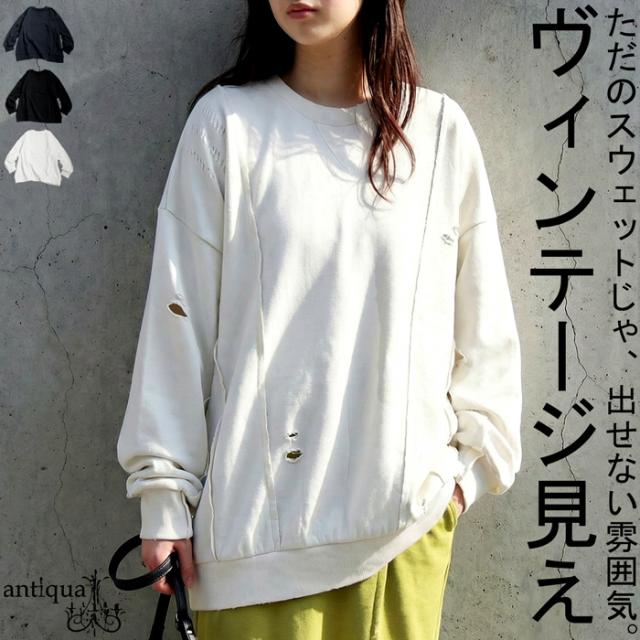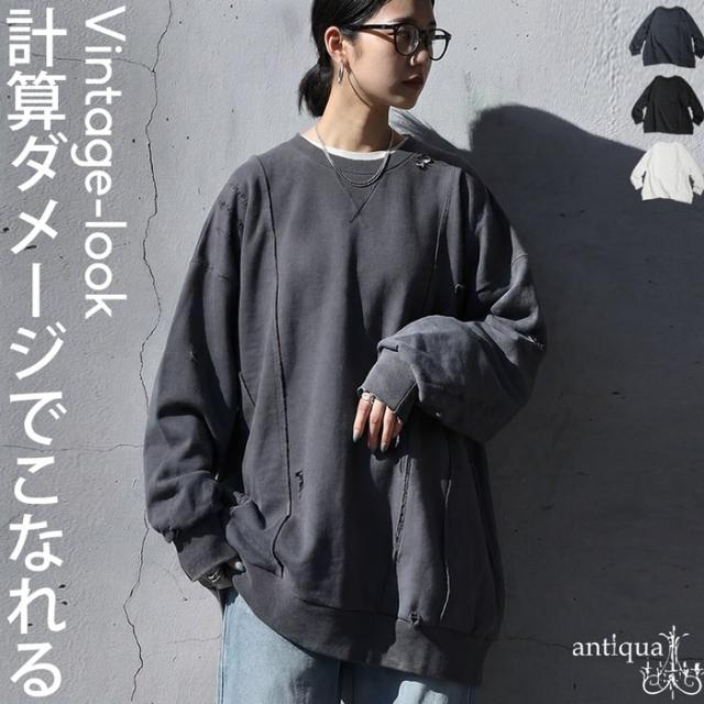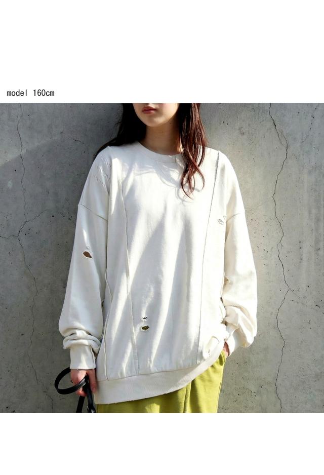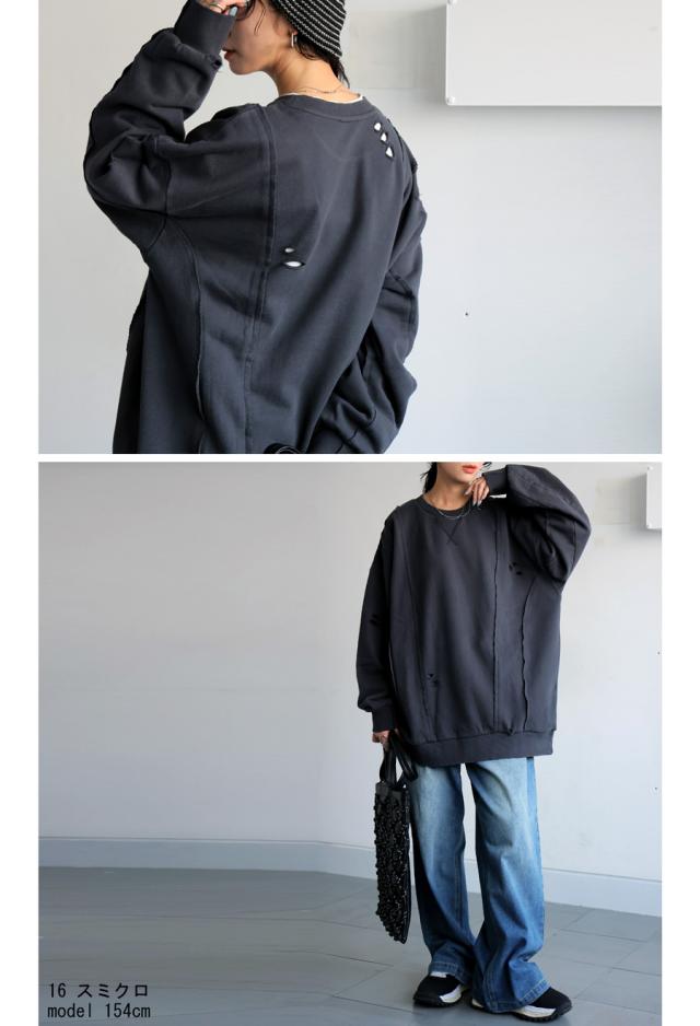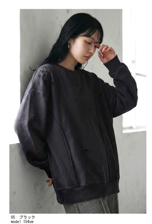 「絶対使える、春の即戦力」1,000円OFF対象! ダメージ加工 スウェット レディース トレーナー 送料無料・メール便不可 冬新作