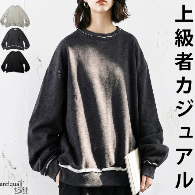 ea-00159 トップス トレーナー 無地 カットオフ ガゼット風 切り替え ゆったり 体型カバー カジュアル ナチュラル モード 抜け感 シンプル ラフ 楽ちん ワンマイルウェア デイリー