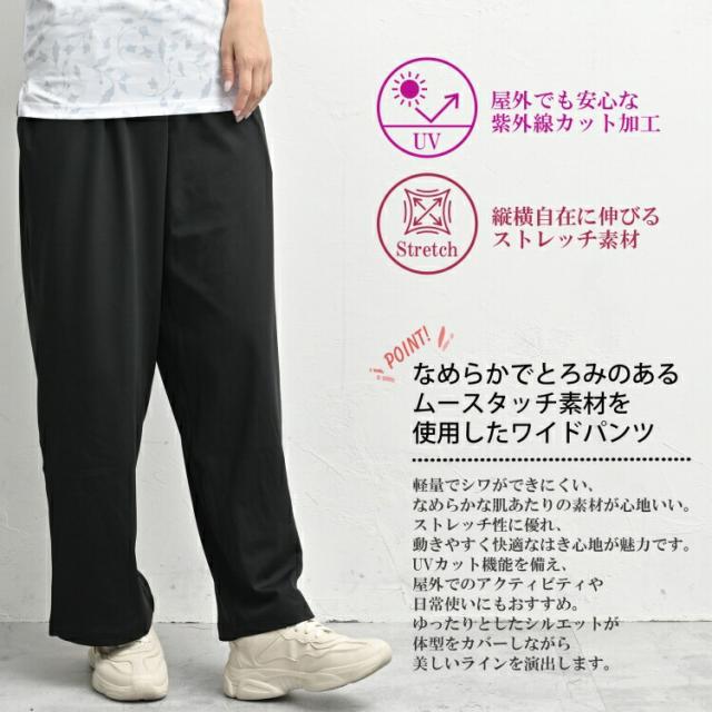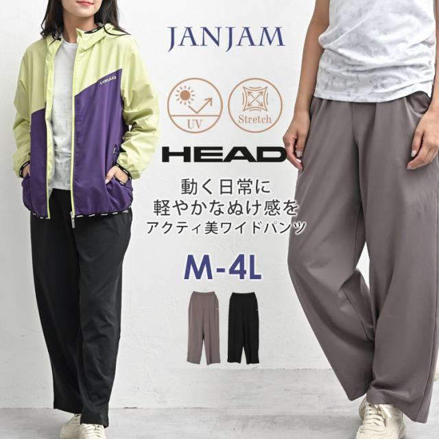 大きいサイズ レディース アクティ美ワイドパンツ メール便送料無料 ウエストゴム UVカット ストレッチ ムースタッチ HEAD ボトムス UVSS M/LL/3L/4L ゆったりサイズ ぽっちゃり女子 プラスサイズ
