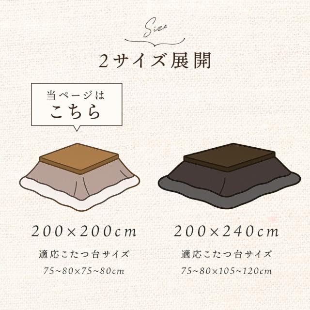 | 200×200cm(正方形:当ページ) | 200×240cm(長方形) |