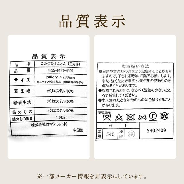 | 在庫限り!ロマンスブランドのお得なこたつ掛け布団 | |