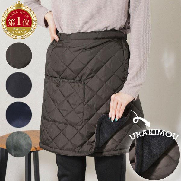 あたたかさ抜群の中綿×起毛のキルティング巻きスカートは、中綿入りでしっかり保温。