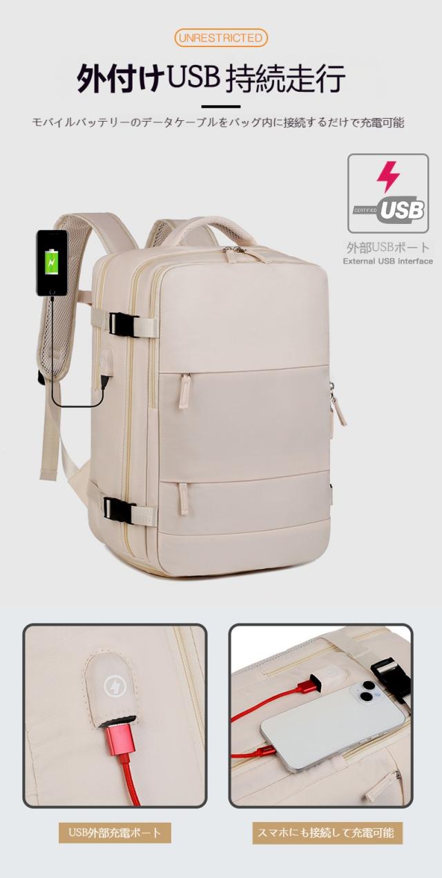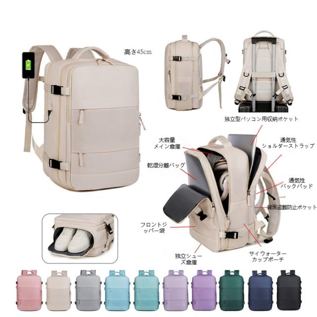 リュック、旅行用バッグ、USB充電、PCバックパック、防水、出張、通勤、軽量、大容量、靴収納、撥水、メンズ、レディース