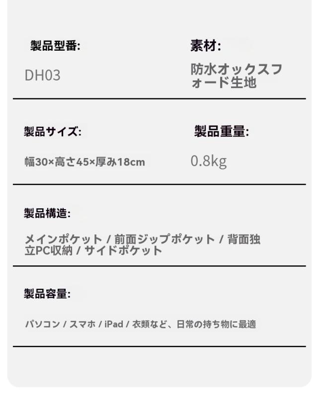 防水オックスフォード素材特有の縫製ムラがある場合があります。