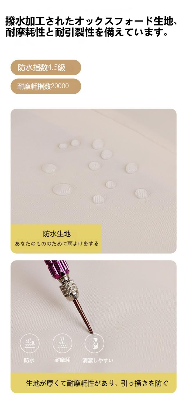 外側:防水オックスフォード生地(耐摩耗・撥水性)