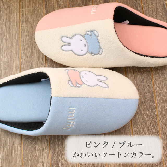 スリッパ ミッフィー バイカラー ツートン ボアチャールス 秋 冬 暖かい かわいい 室内 ルームシューズ 送料無料 1足