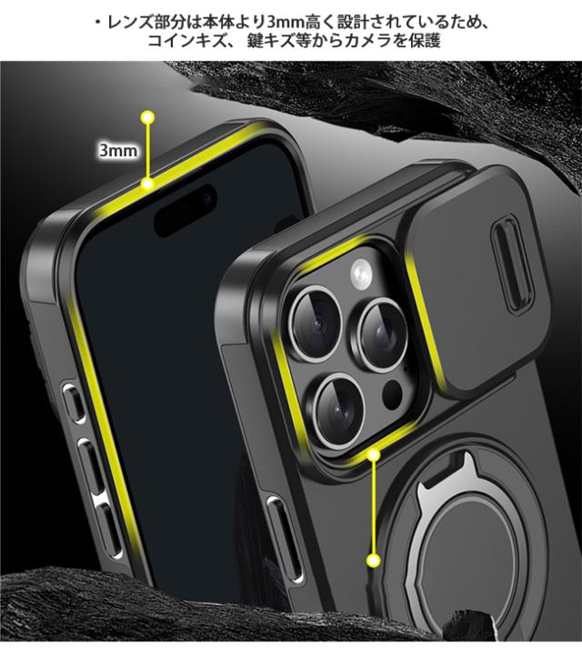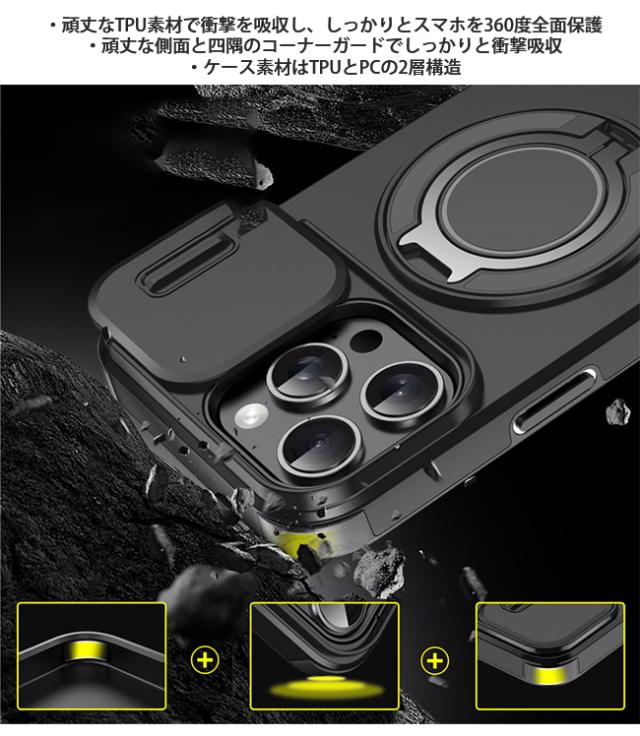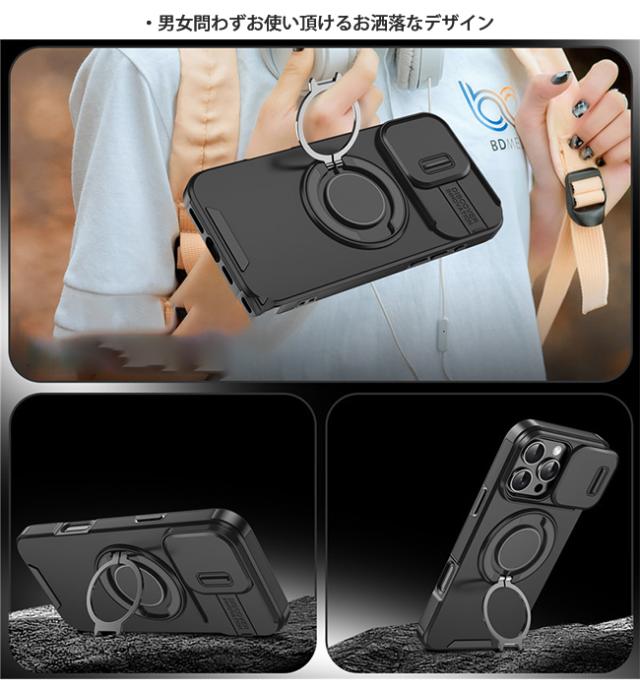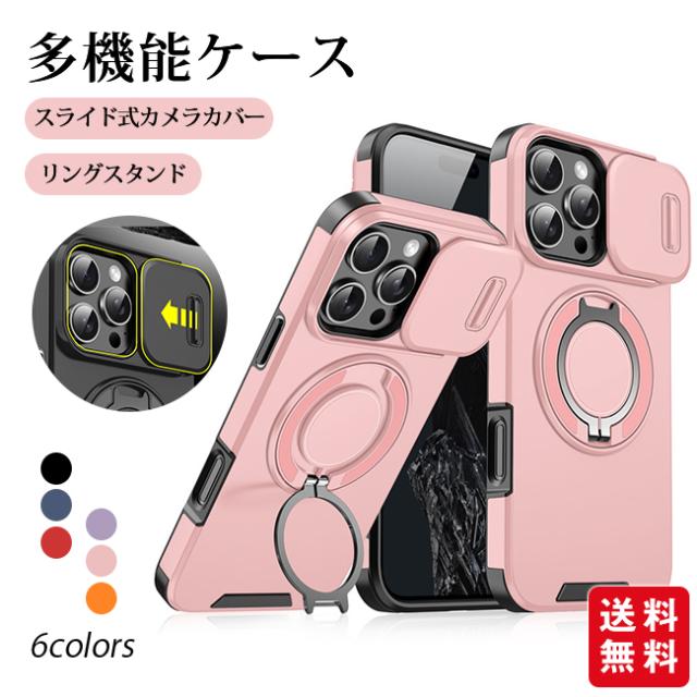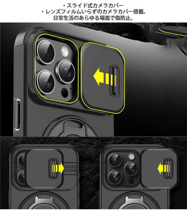 iphone17カバー ケース 全面保護 リングスタンド カメラスライド カメラカバー 耐衝撃 衝撃吸収 スライド