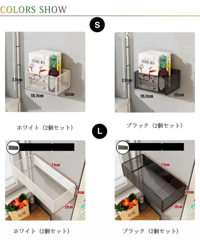 | 穴あけ不要で簡単設置!磁石で設置と着脱が簡単なマグネットラック。2個セット キッチンパネルや冷蔵庫に貼るだけで設置できる収納ラック。台所のデッドスペースを有効活用してスパイスボトルなどの調味料やタイマーなどのキッチングッズを浮かせて収納できます。 【マグネット吸着式収納】穴あけ不要で冷蔵庫や洗濯機、電子レンジの側面収納、キッチン、バスルーム、防犯ドアなどの壁面収納としてお使い頂けます。磁力で取り付け可能なので、持ち運び便利ですし、繰り返しの利用できます。 【上質な素材】金属で作られたこのスパイスラックは、耐摩耗性があり、長時間使っても錆びつくことはありません。 【適用対象】スパイス、日常小物、ゴミ袋、お酒、風呂用品、化粧品、事務用品などに使用できます。 【綺麗なデザイン】シンプルな収納ラックは、十分な高さで物をしっかり守れます。ホワイト、ブラック2色で自由に組み合わせ可能、どのようなインテリアスペースにもお似合いできます。 | |