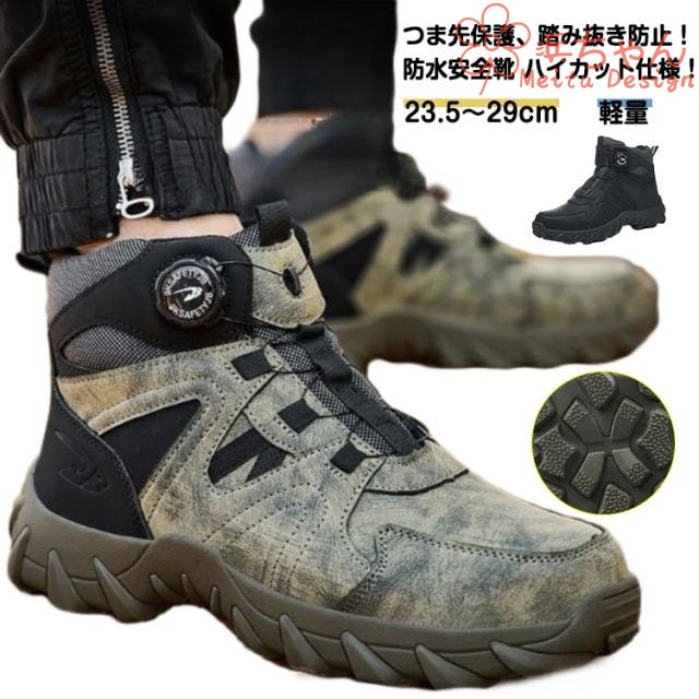 | 23.5?29cm!つま先保護、踏み抜き防止!防水安全靴 ハイカット仕様!安全靴ですがトレッキングシューズとしても使えます!普段使いにもオススメ! 鉄先芯入り! 滑りにくい耐滑ソールを採用! ハイカットデザインは足首までしっかりサポートし、安定した歩行を促進します。 防水機能も備えており、雨天時や水場での作業も問題なし。 耐久性と機能性を兼ね備えた安全靴は、建設現場、工場、倉庫作業など、幅広いシーンで活躍すること間違いなしです。 | |