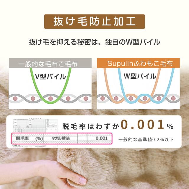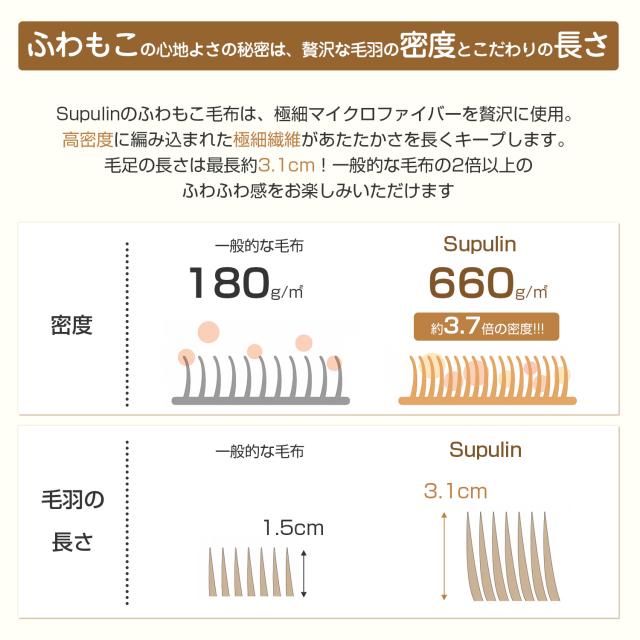最長3.1cm、最短1.5cm。通常の毛布より倍以上のボリュームで、よりふんわり柔らかい感触を楽しめます。