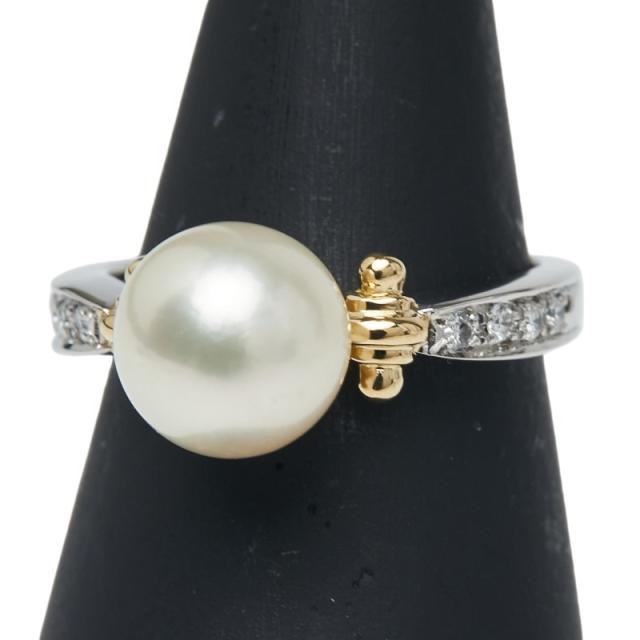Pt900 プラチナ K18YG イエローゴールド コンビ アコヤパール9.2mm ダイヤ0.11ct リング 指輪 レディース 14号 中古