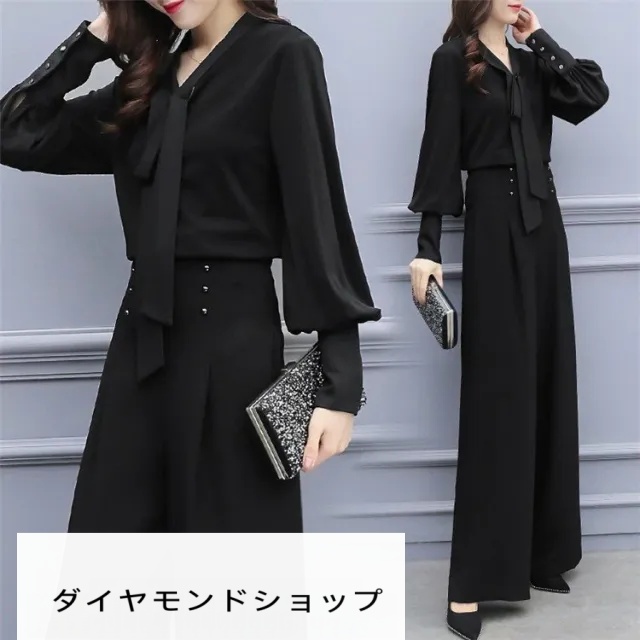 パンツセットアップ レディース 2点セット ワイドパンツ パンツドレス シャツ ブラウス ガウチョパンツ シフォン 着痩せ 30代 40代 大人 上品 通勤 結婚式 OL ホワイトデー