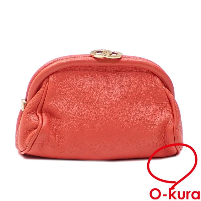 中古 ブルガリ がま口 コインケース レディース レッド系 ベージュ レザー 小銭入