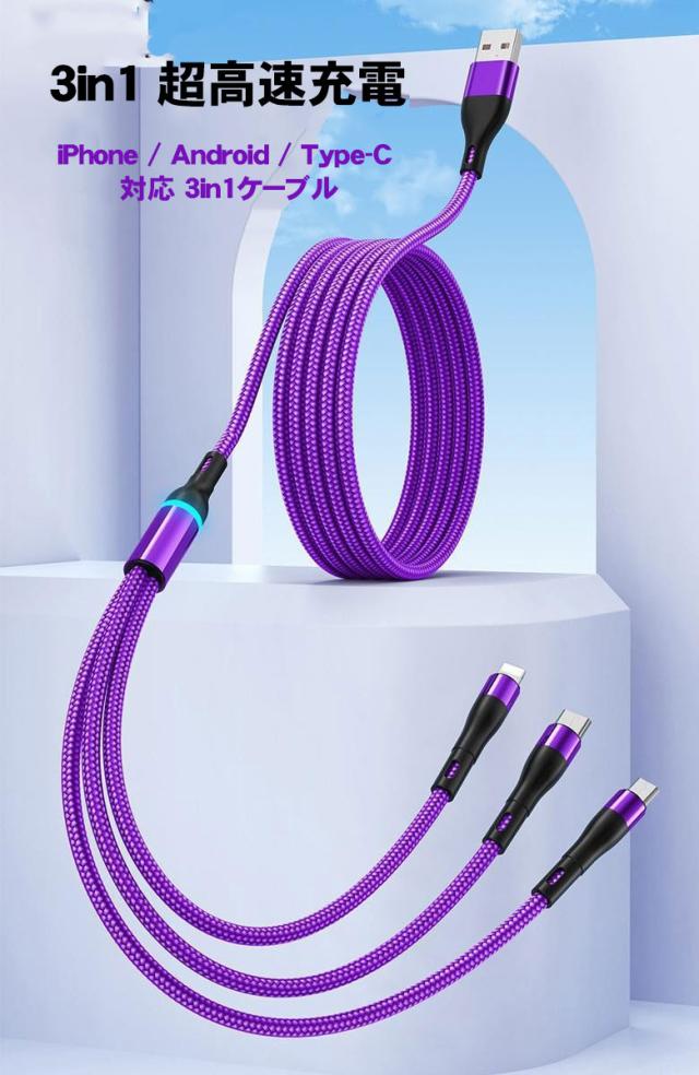 6in1 充電 ケーブル 急速 充電器 急速充電 マルチ充電ケーブル iPhone ケーブル type-c マルチケーブル usbケーブル スマホ ケーブル アンドロイド マイクロusb 充電コード 長さ 120cm