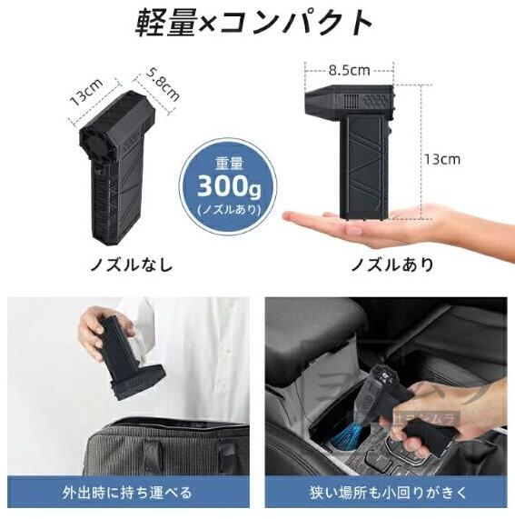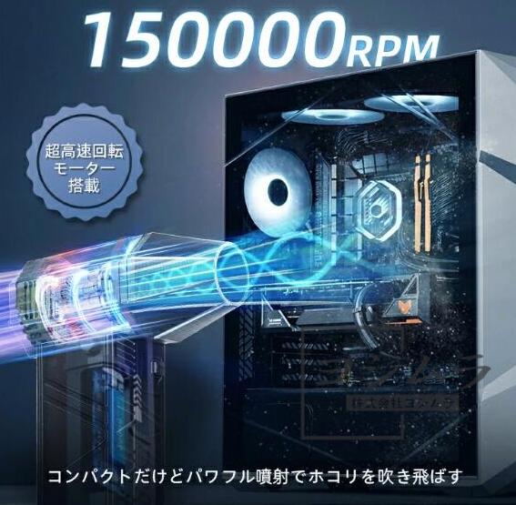 【品質保証】エアダスター 電動エアダスター 150000RPM 風量4段階 充電式 小型 超強力 ノズル付 空気入れ ガス不使用 多用途(PC 掃除/キーボード/車内/エアコン/洗車用等) アウトドア