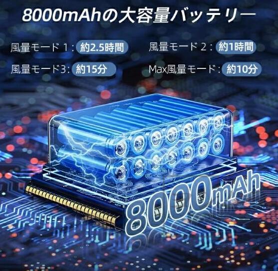 【8000mAhの大容量バッテリー&長時間使用可能】従来5000mAh容量電池と比べて、この充電式 エアダスターはバッテリー容量約1.6倍以上!フル充電しなら、最大約120分で使用できます。また、加熱保護のために、中風と強風モードで10分後に電源を自動的にきれます。ちなみに、USBケーブルを装備しているので、いつでもどこでも充電でき、使いたいときにすぐに使えます。ご注意:この製品は長距離輸送されているため、使用する前に3〜5時間充電し、インジケーターランプが緑色に点灯するのを待ってから使用を開始することをお勧めします。商品到着後、ご使用前に必ずフル充電してください。 また、使用途中に電源がない場合は、バッテリーの過剰な減少を避けるため、時間内に充電してください。