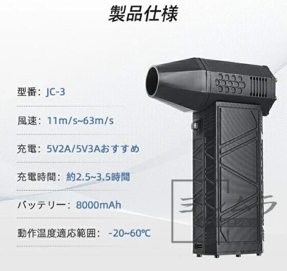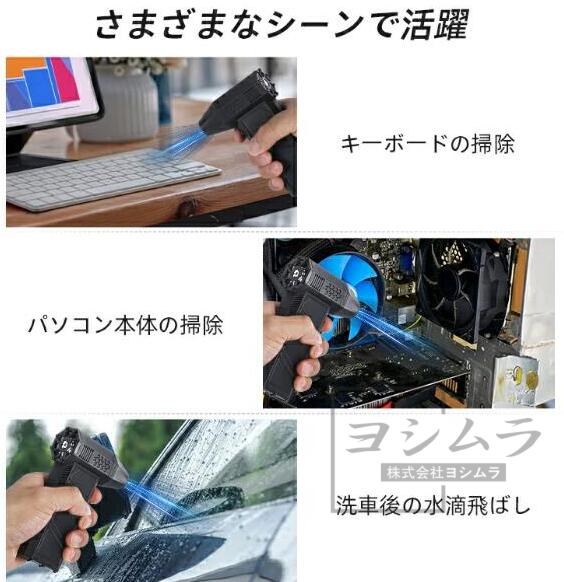 【コンパクト&持ち運びやすい】ブロワー エアダスターのサイズは128*86*29mm、重量はわずか300g、手のひらサイズで、片手でも持ちやすい。見た目だけでなくて追求された操作性にもこだわります。小型で軽量ながらもパワフルな性能を持ち、家庭やオフィス、旅行先での使用に最適です。ご注意:本製品に付属のデータケーブルの使用をお勧めします。 本製品はバッテリー容量が大きいため、2A以上の充電ヘッドの使用をお勧めします。 2A以下の充電ヘッドを使用すると、充電が遅くなることがあります。