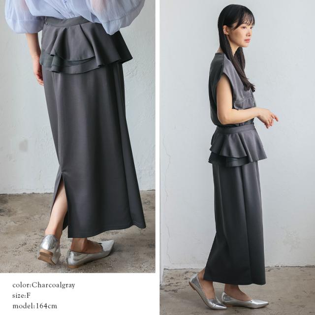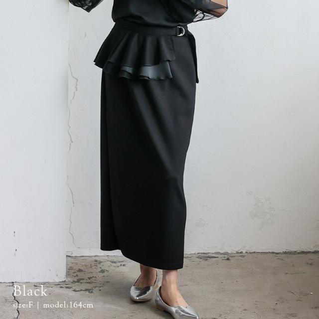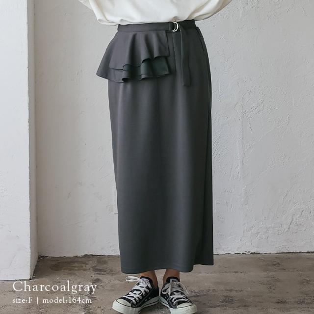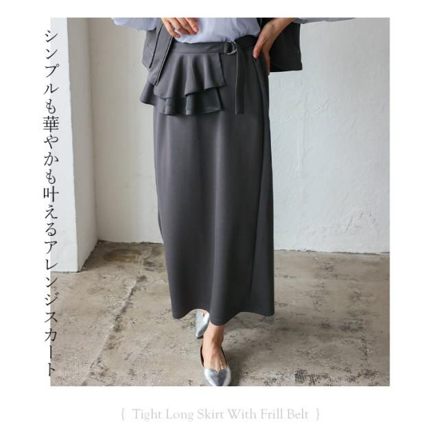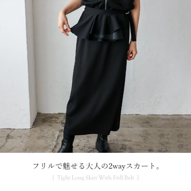 フリルベルト付きタイトロングスカート(セットアップ対応)