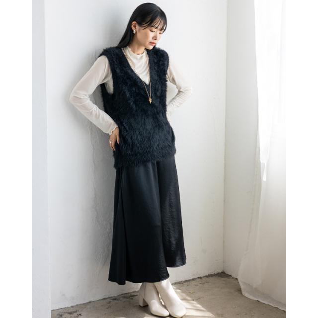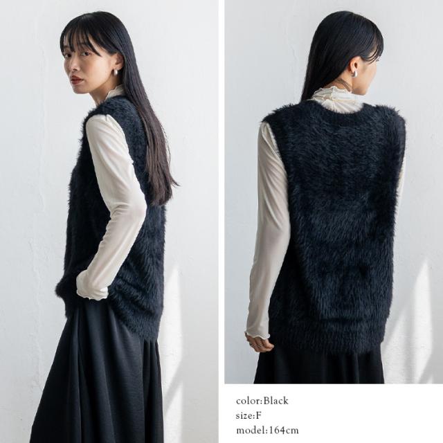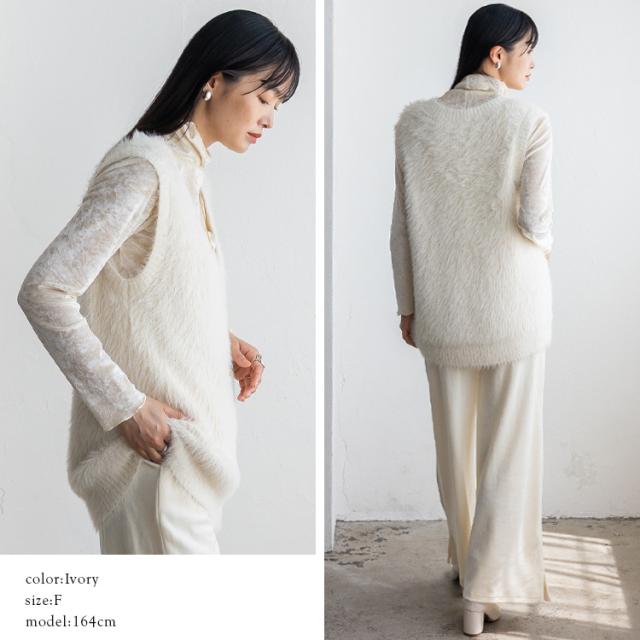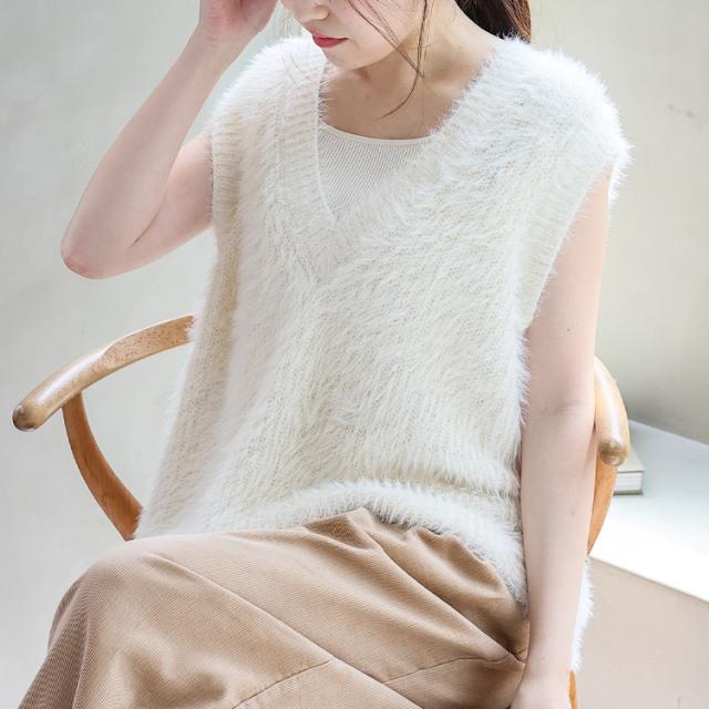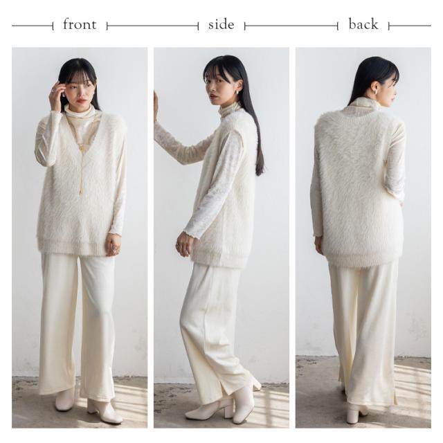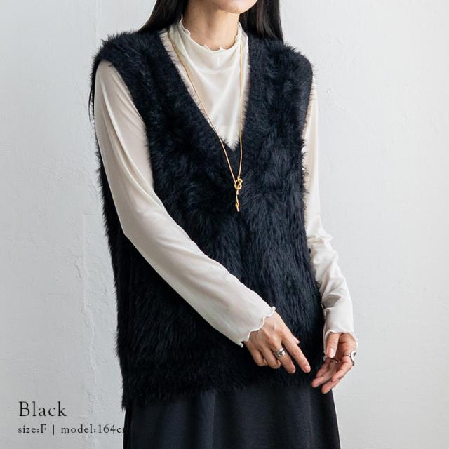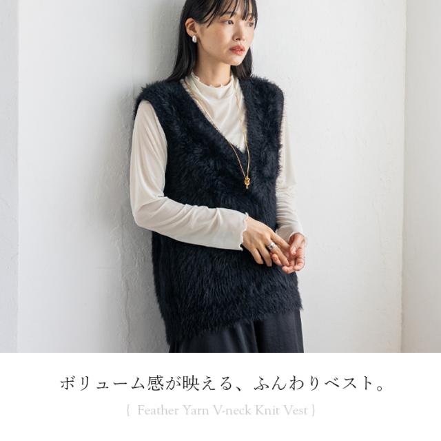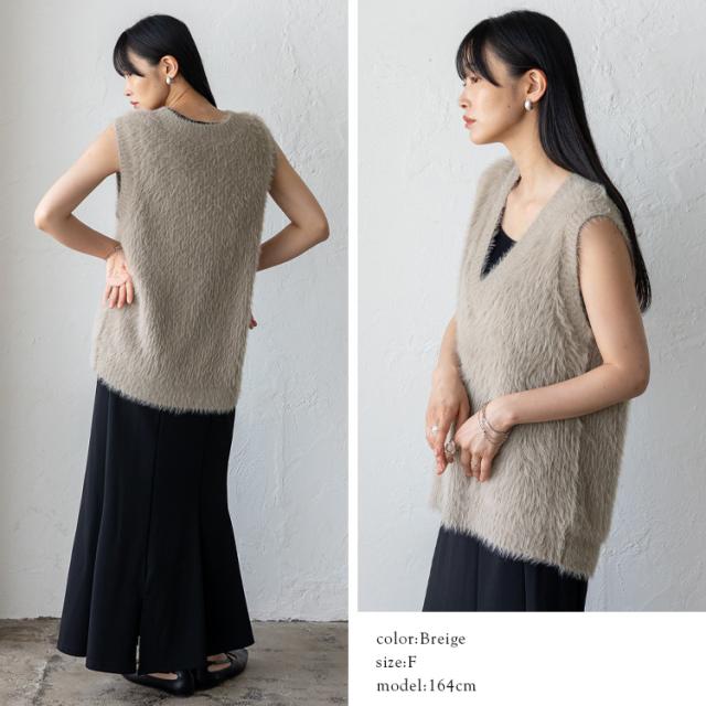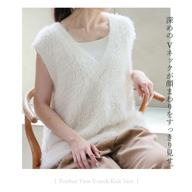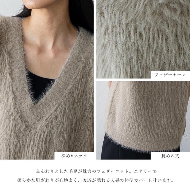 ベスト レディース 秋冬 ニットベスト Vネック フェザーヤーン シャギーニット トップス 秋 長め ロング丈 袖なし ニット ノースリーブ レイヤード 重ね着 体型カバー ゆったり 洗える おしゃれ きれいめ blc-db25151