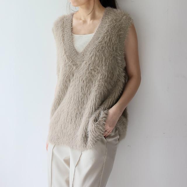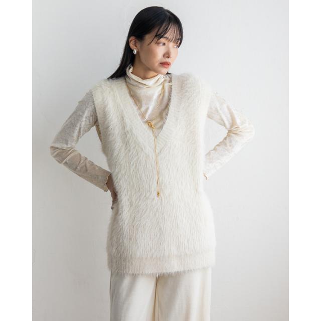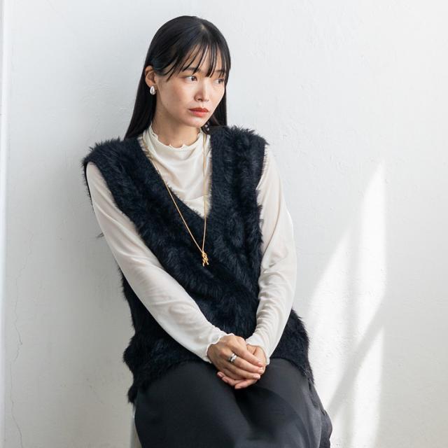 ふんわりとしたエアリーな毛足が魅力的。柔らかい肌触りで、ふっくらしたボリューム感が映える1枚です。