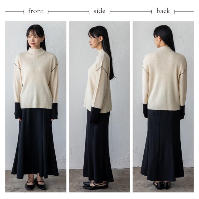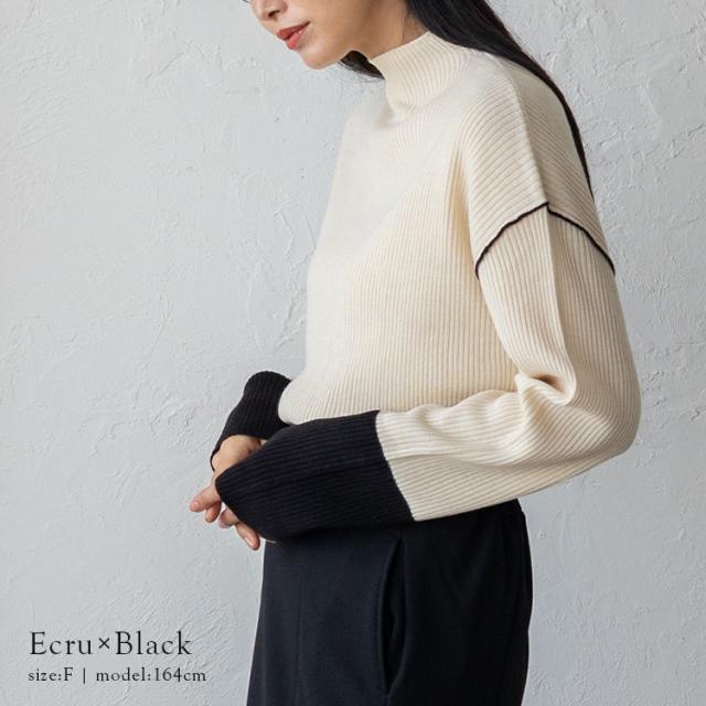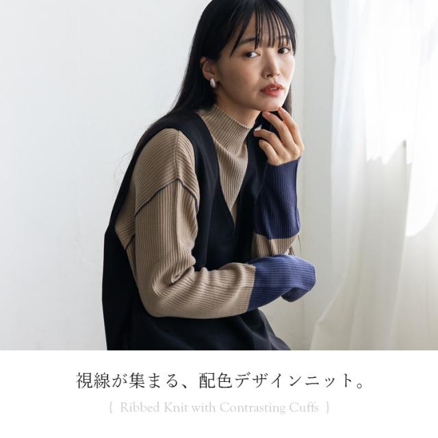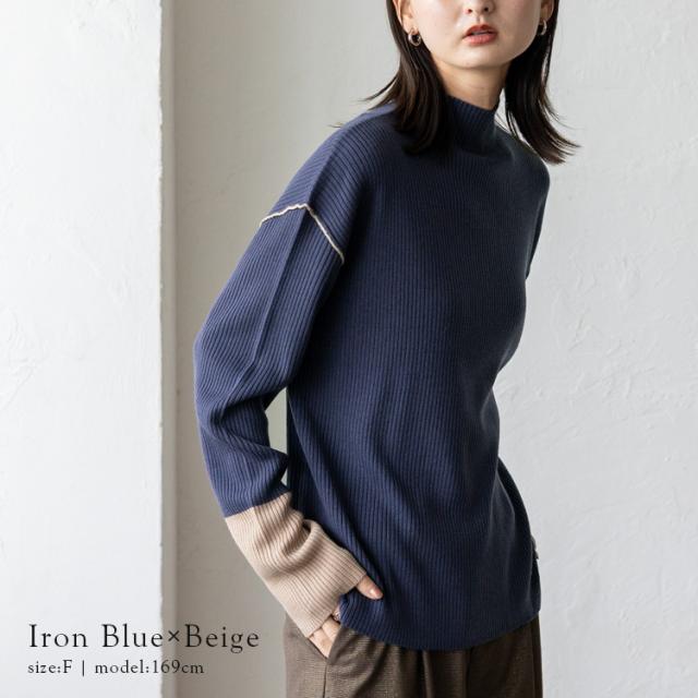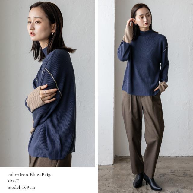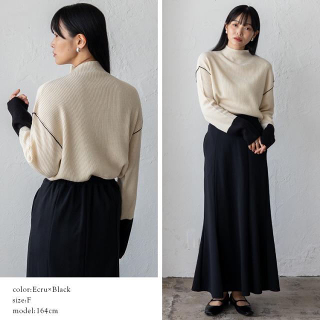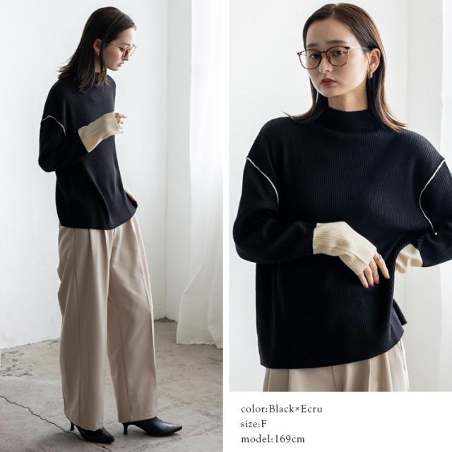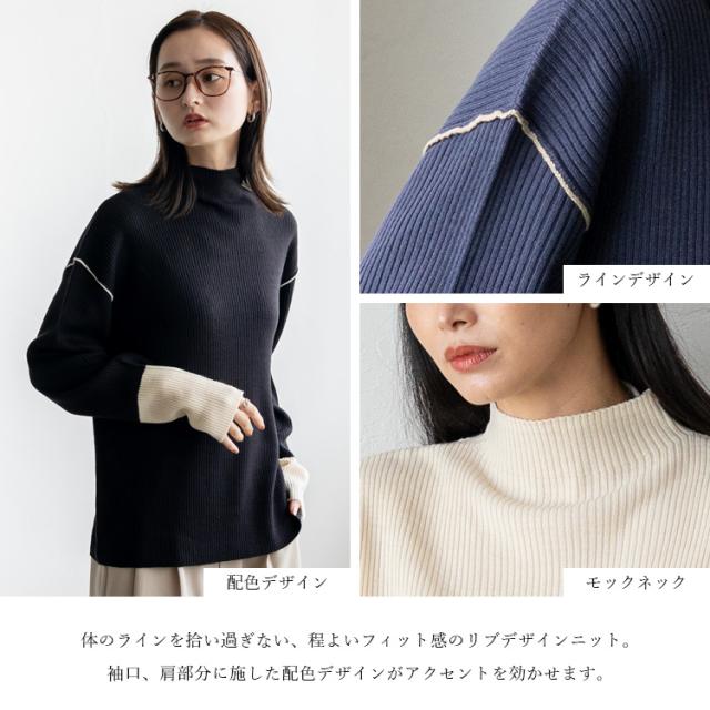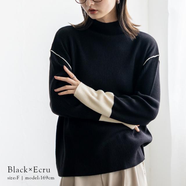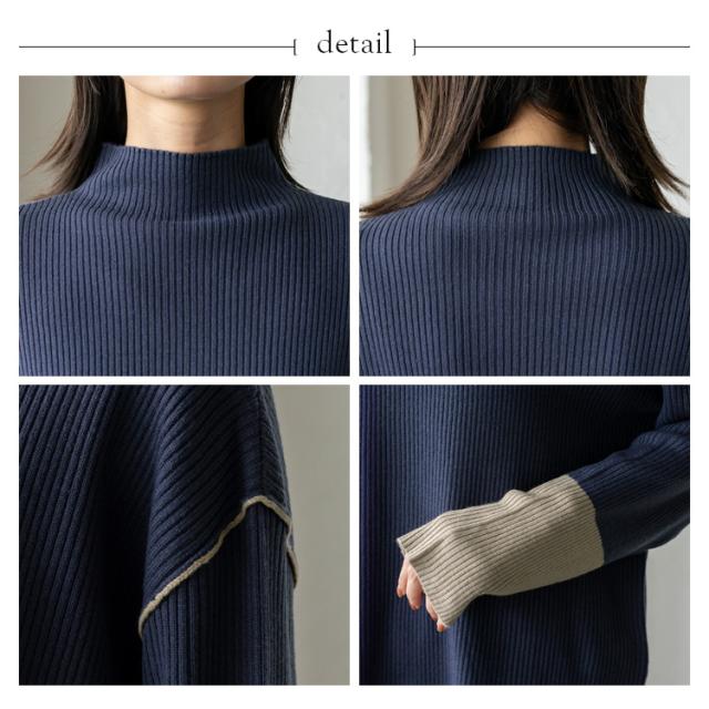 配色ニット ニット レディース 長袖 トップス リブニット ハイネック 袖 配色 バイカラー 切り替え ラインデザイン モックネック セーター レイヤード オーバーサイズ 体型カバー 洗える おしゃれ シンプル カジュアル きれいめ 【メール便】 blc-db25035