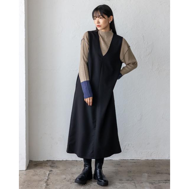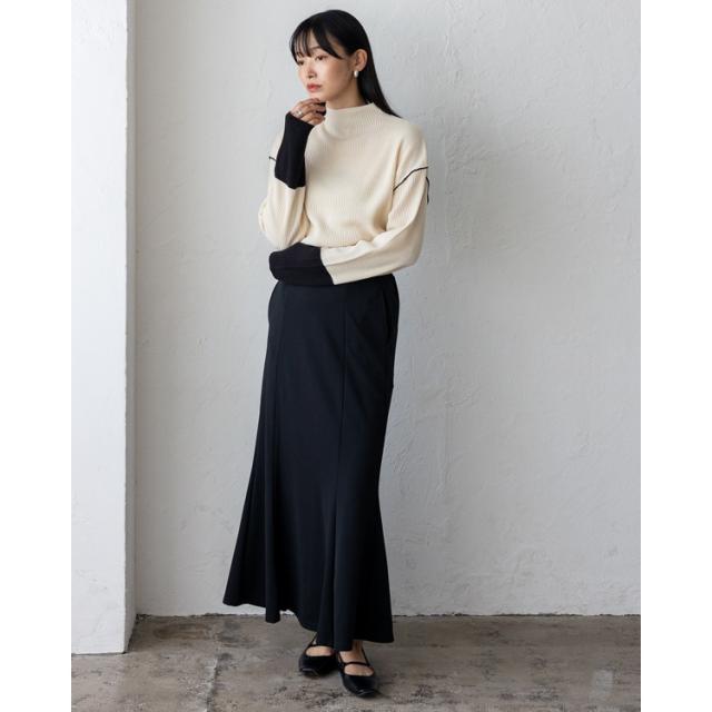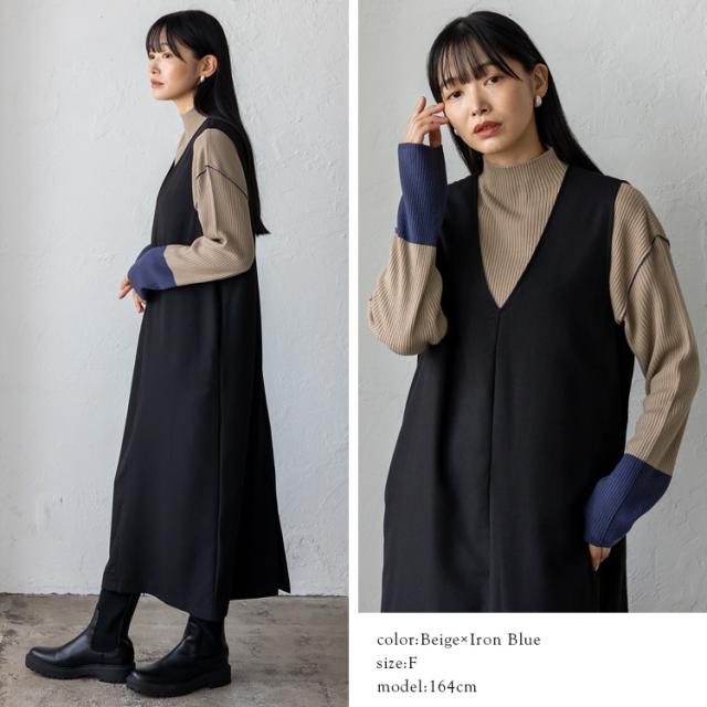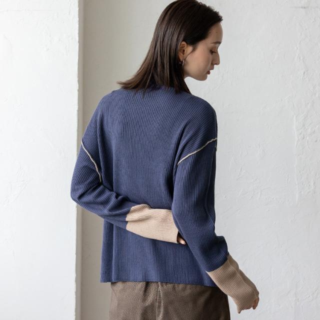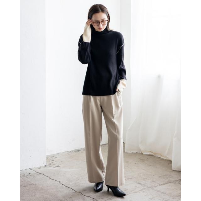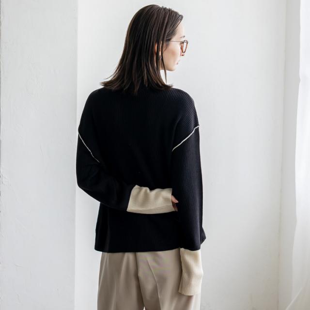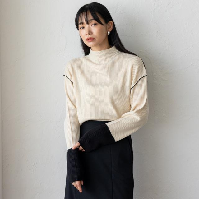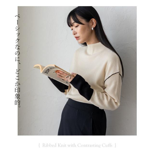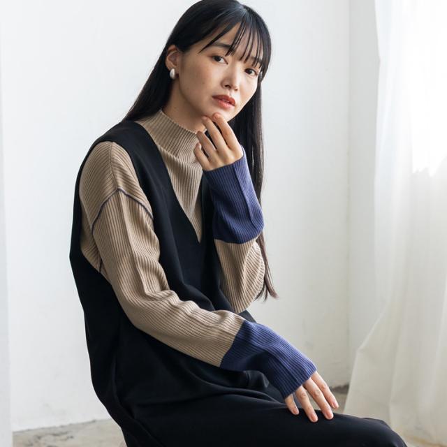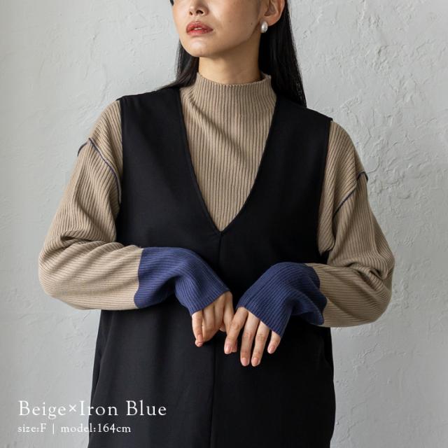 配色ニット ニット レディース 長袖 トップス リブニット ハイネック 袖 配色 バイカラー 切り替え ラインデザイン モックネック セーター レイヤード オーバーサイズ 体型カバー 洗える おしゃれ シンプル カジュアル きれいめ 【メール便】 blc-db25035