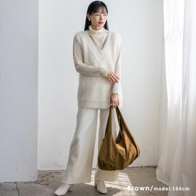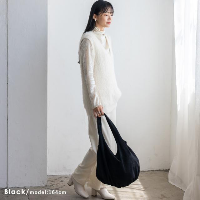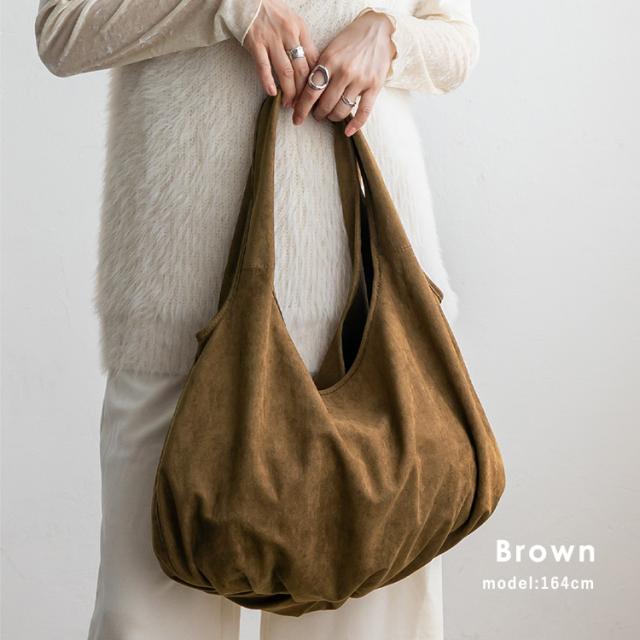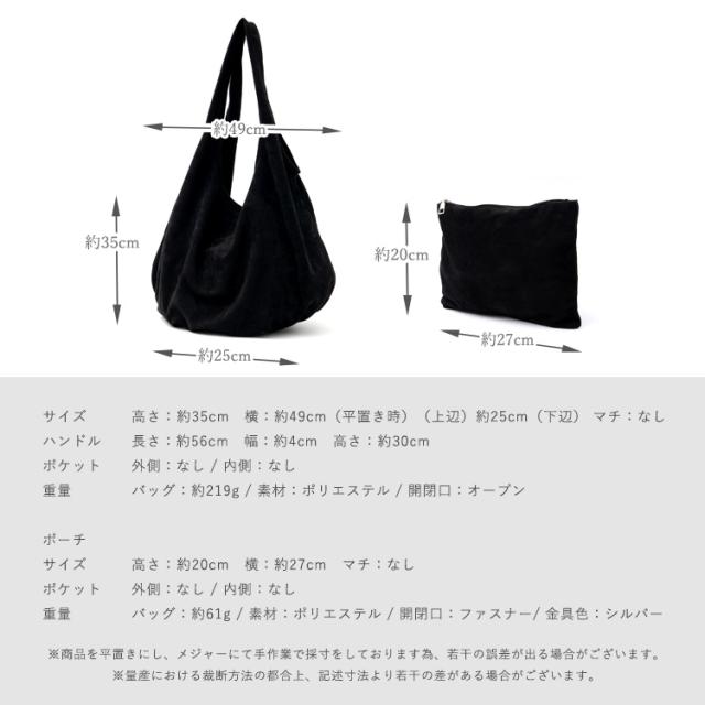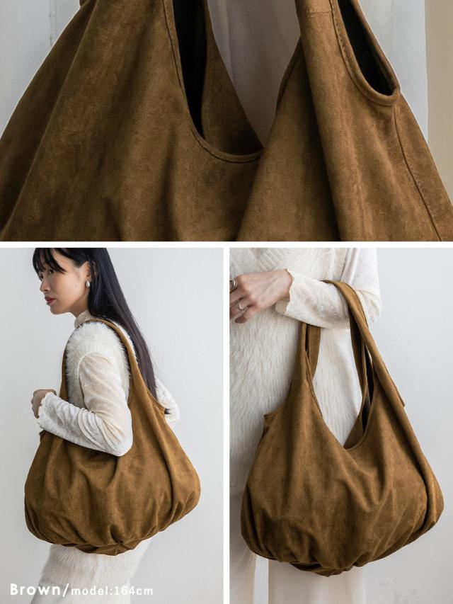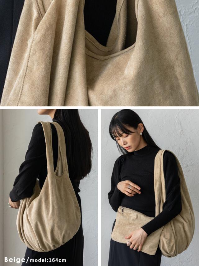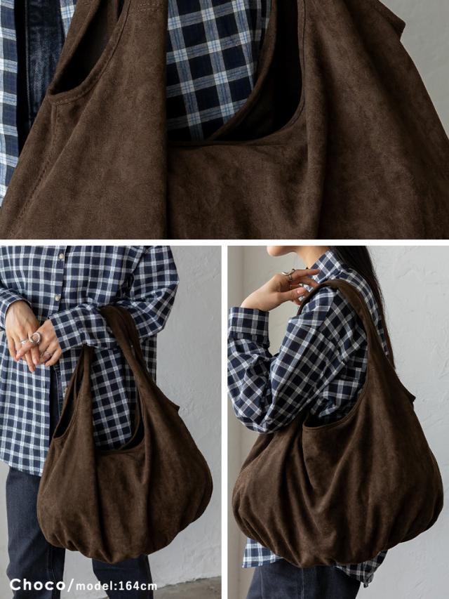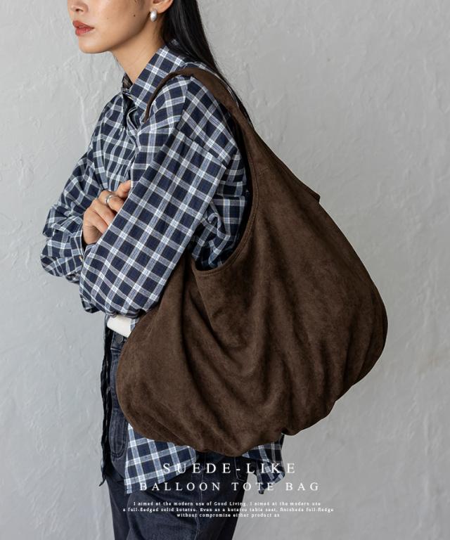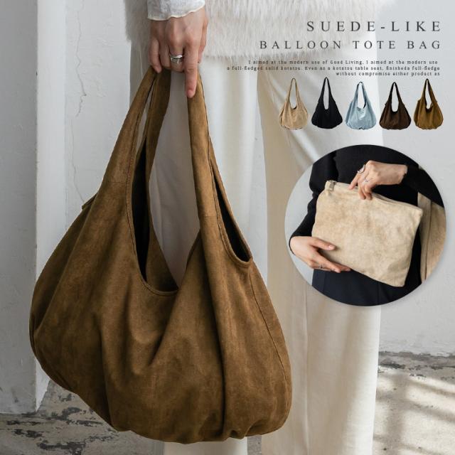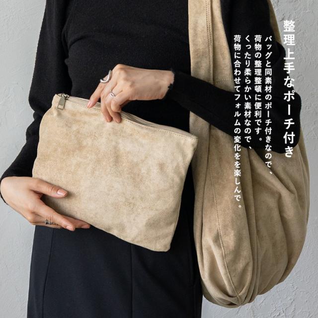 【ポーチ付き】トートバッグ レディース 軽量 バルーントートバッグ スウェード調 ショルダー バッグ a4 大容量 大きめ 半月型 ハーフムーンバッグ 肩掛け きれいめ 【メール便】 nsb-30362z 【aroco/アロコ】 秋冬 秋バッグ クリスマス プレゼント