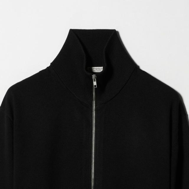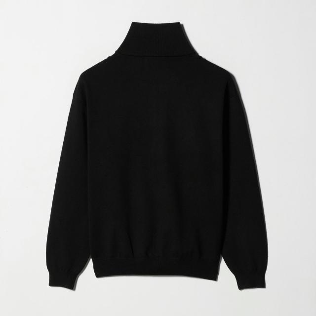 上質なウーステッドウールと安定感のあるポリエステル糸をプレーティング編みで仕立て、ファインゲージニットの繊細な表情と、しっかりとしたハリ感を両立。