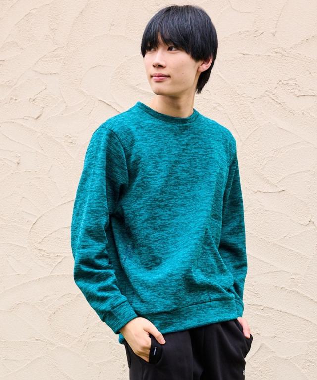 エアブラッシュ加工による軽やかな風合いと、裏起毛のぬくもりが魅力のクルートレーナー。
