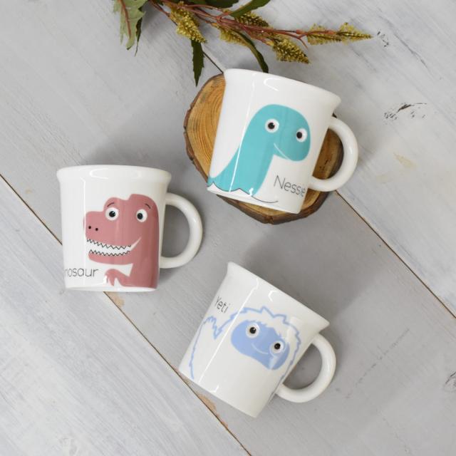 《 LH19676 陶器製 陶磁器製 電子レンジ レンジ 食洗機 対応 OK DINOSAUR Yeti Nessie 恐竜 ネッシー イエティ ゆるい ゆる キャラ 未確認生物 ゆるーいUMA 食器 ティーカップ カフェ用品 キッチン雑貨 キッチン用品 雑貨 プレゼント ギフト 誕生日 》