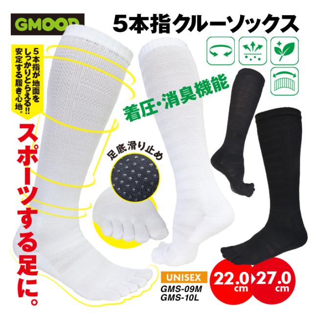 ジームード クルー丈 5本指ソックス ベアフット 機能性 靴下 膝下 着圧 吸汗速乾 消臭 サポート 足裏滑り止め スポーツ ビジネス 通学 通勤 シンプル 黒 白 ブラック ホワイト ユニセックス メンズ レディース ジュニア 男女兼用 GMOOD