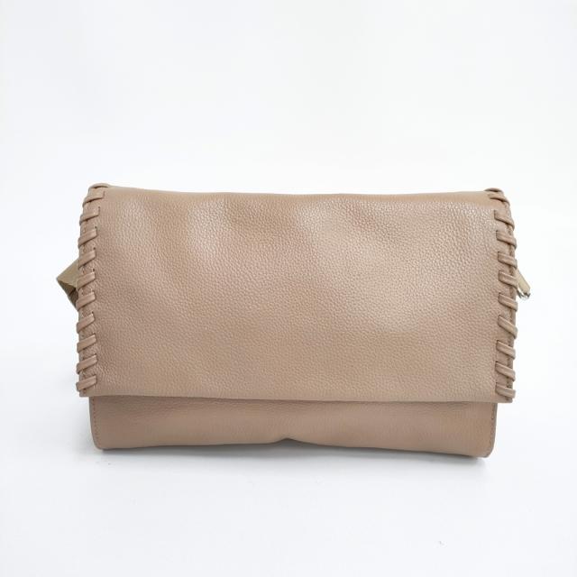 ear papillonner ワイドテープショルダーバッグ レザー 革 ショルダーバッグ ベージュ レディース イアパピヨネ【中古】5-1001G◎