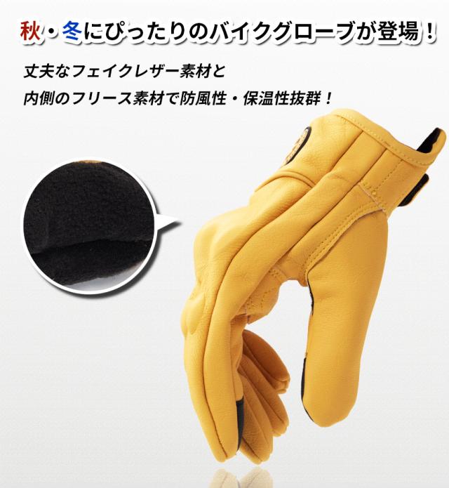 バイク グローブ 冬 防寒 手袋 寒さ対策 プロテクター 丈夫 頑丈 裏起毛 フリース 暖かい バイカー おしゃれ かっこいい イエロー
