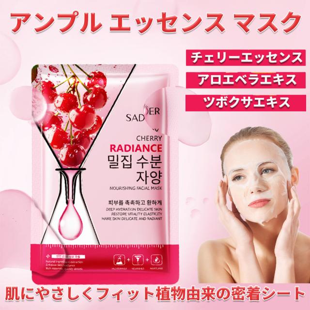 [15枚セット]天然フルーツエッセンス シートマスク 個包装、フェイスパック 個包装【チェリーエッセンスアンプル】フェイスマスク 個包装、マスクパック、ビタミン パック、美容パック、デイリーパック、ピタッと密着、肌荒れ パック、美容マスク