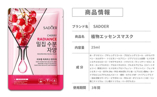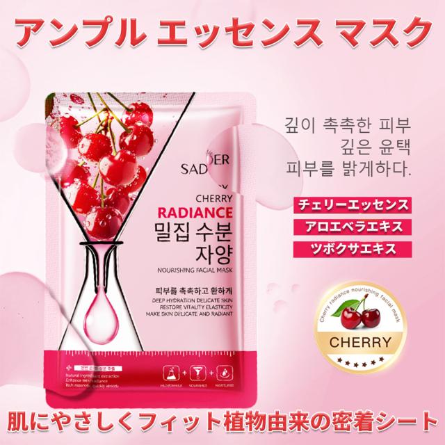 [10枚セット]天然フルーツエッセンス シートマスク 個包装、フェイスパック 大容量【チェリーエッセンスアンプル】活性成分配合、鎮静パック、ビタミン パック、美容パック、デイリーパック、ピタッと密着、肌荒れ パック、美容マスク