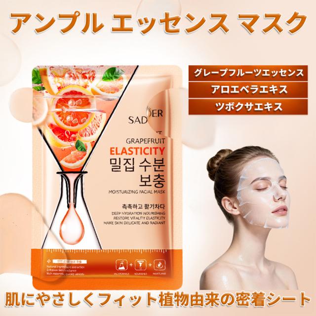[15枚セット]天然フルーツエッセンス シートマスク 個包装、フェイスパック 個包装【グレープフルーツエッセンスアンプル】フェイスマスク 個包装、マスクパック、保湿パック、デイリーパック、美容パック、ピタッと密着、肌荒れ パック、美容マスク