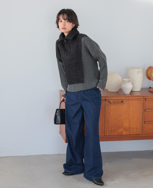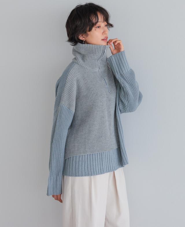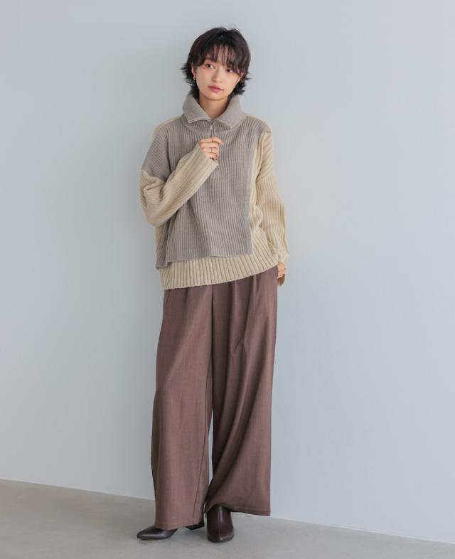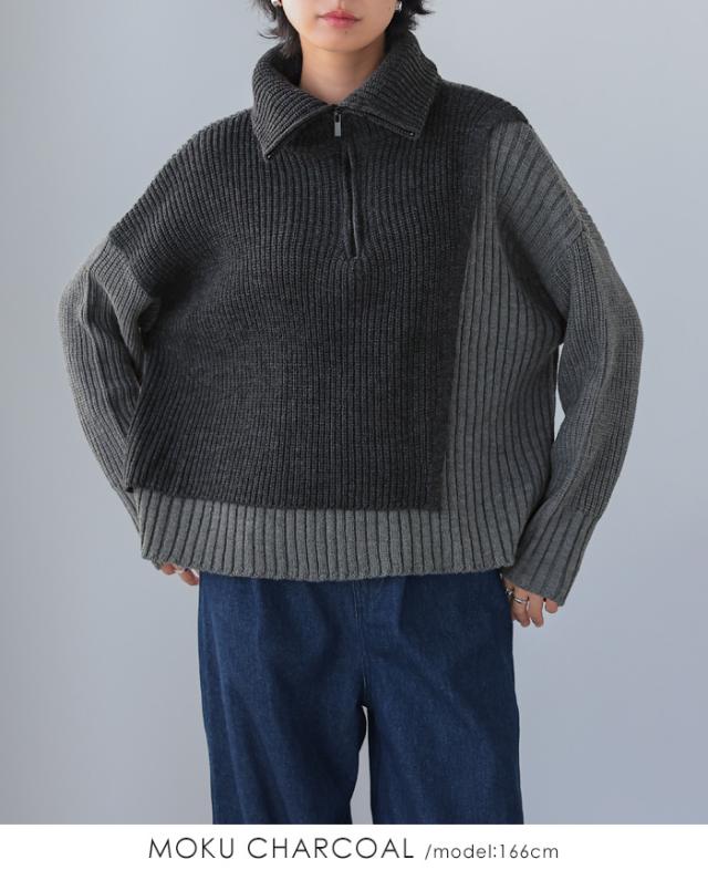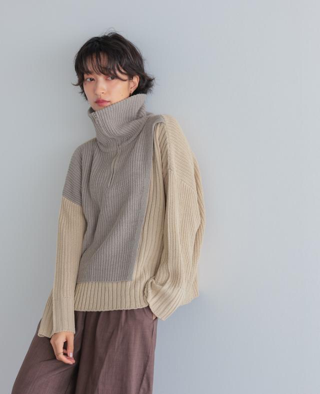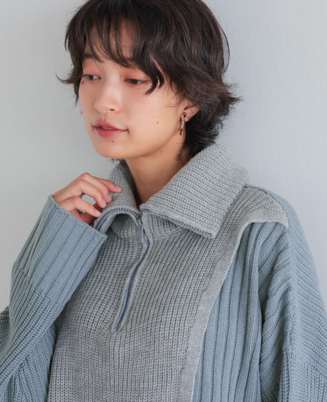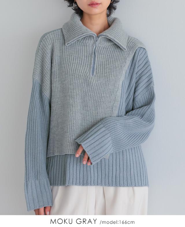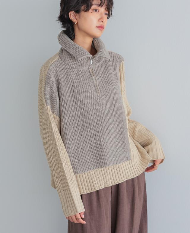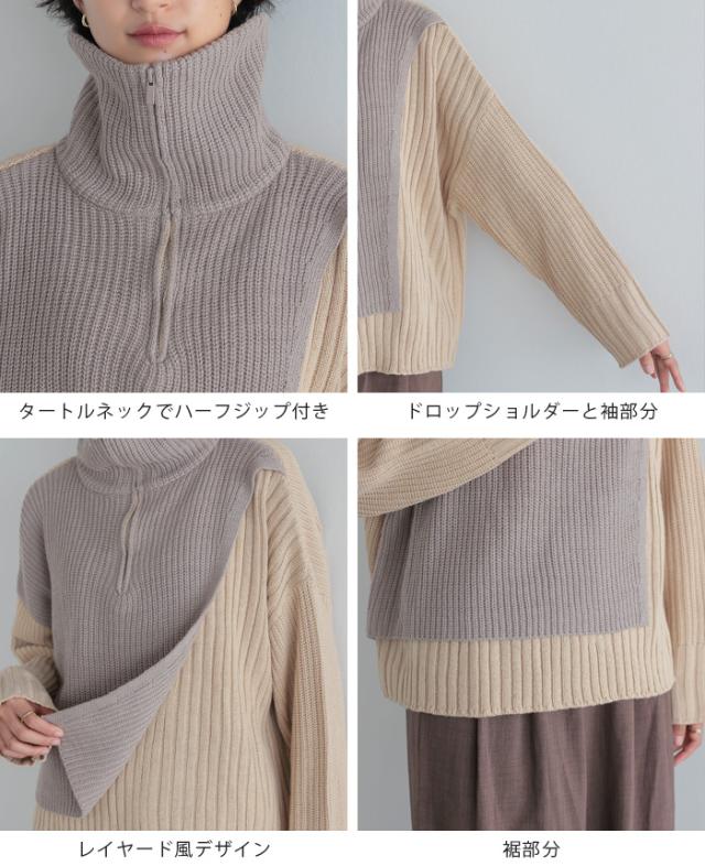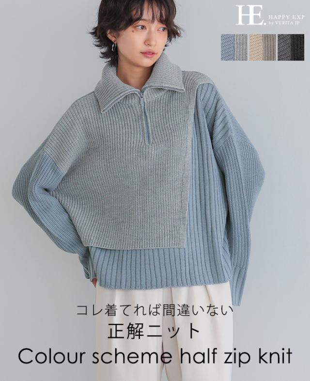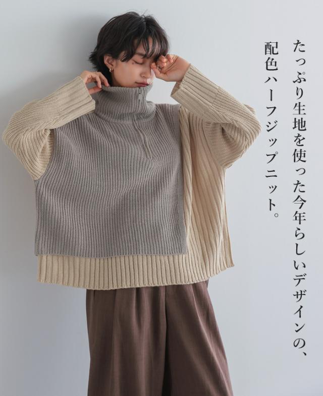 配色ハーフジップニット トップス 秋冬【メール便不可】
