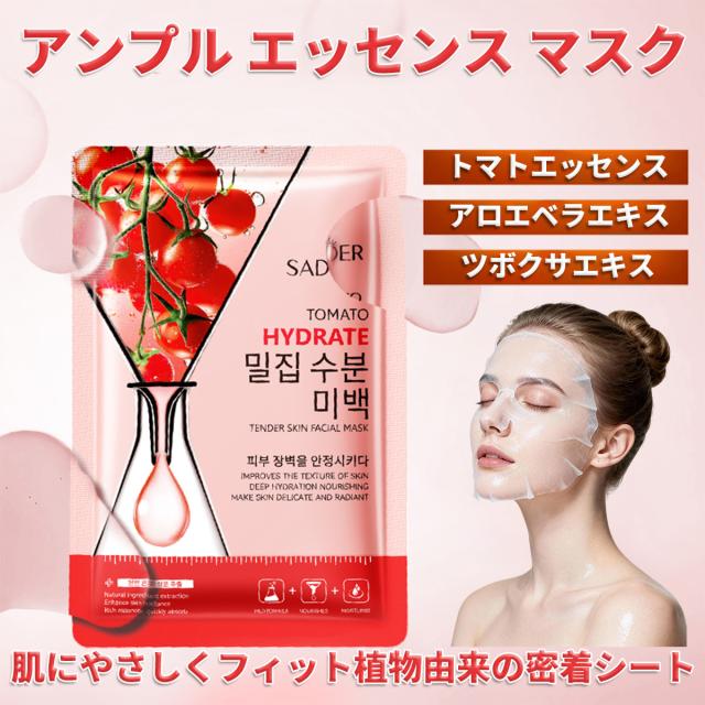 [15枚セット]天然フルーツエッセンス シートマスク 個包装、フェイスパック 個包装【トマトエッセンスアンプル】フェイスマスク 個包装、マスクパック、ビタミン パック、美容パック、デイリーパック、ピタッと密着、肌荒れ パック、美容マスク